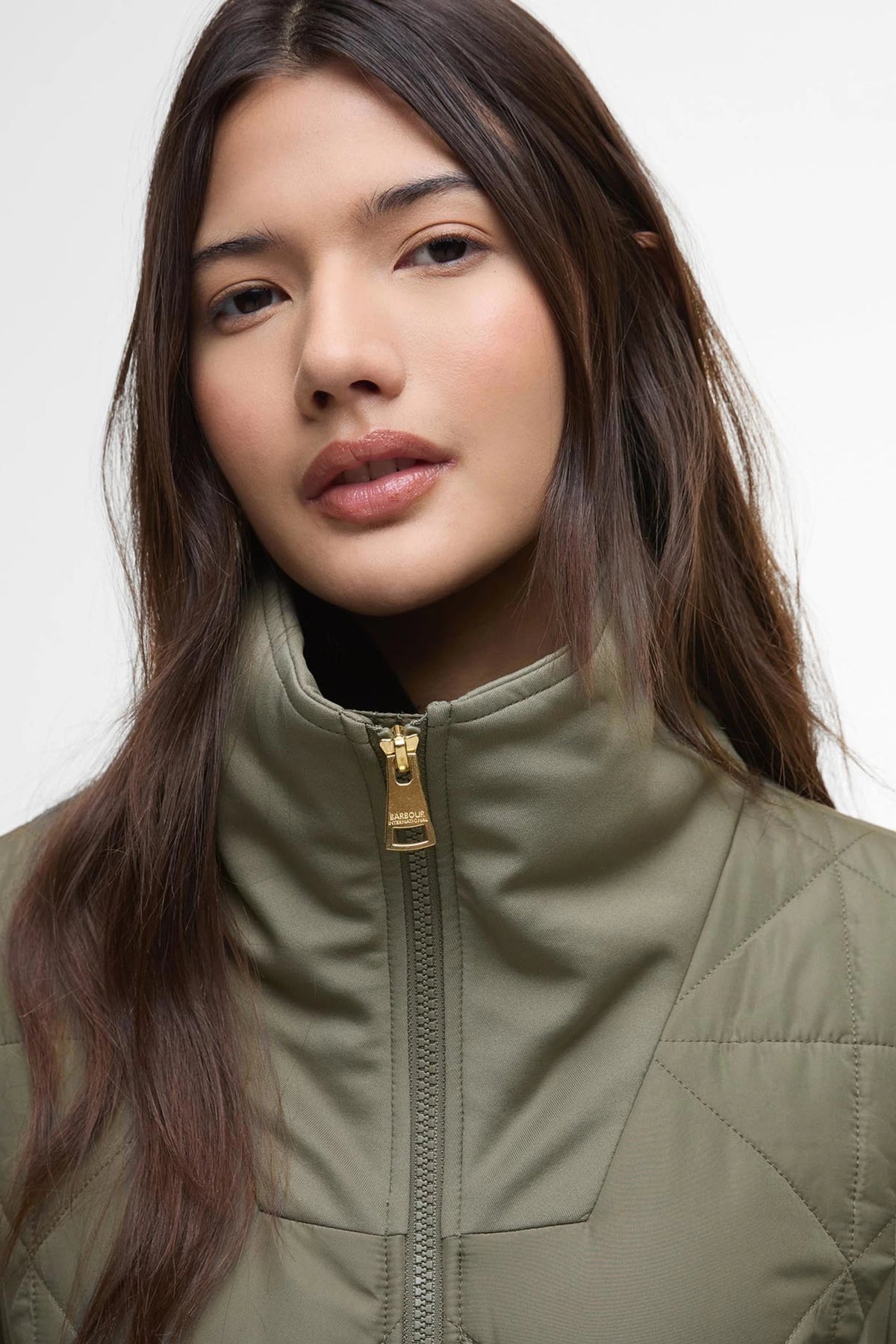 • Denna quiltade sweatshirtjacka har en ny quiltad design som skapar en modern look och kompletteras med en hög krage och dragkedja fram